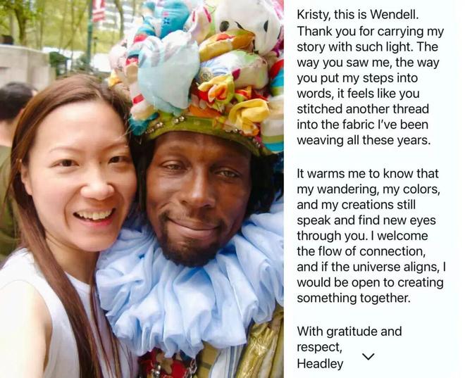 尽管 Headley 身上有着一般人难以接受的味道,曲家瑞却无视这一切,着迷于他穿的那些亲手缝制的衣服,称他为“行走的艺术家”。