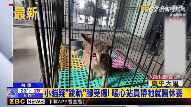 台湾的一只迷路小猫搭乘台铁列车,8 月 5 日在台东火车站的铁路轨道上被司机员发现。